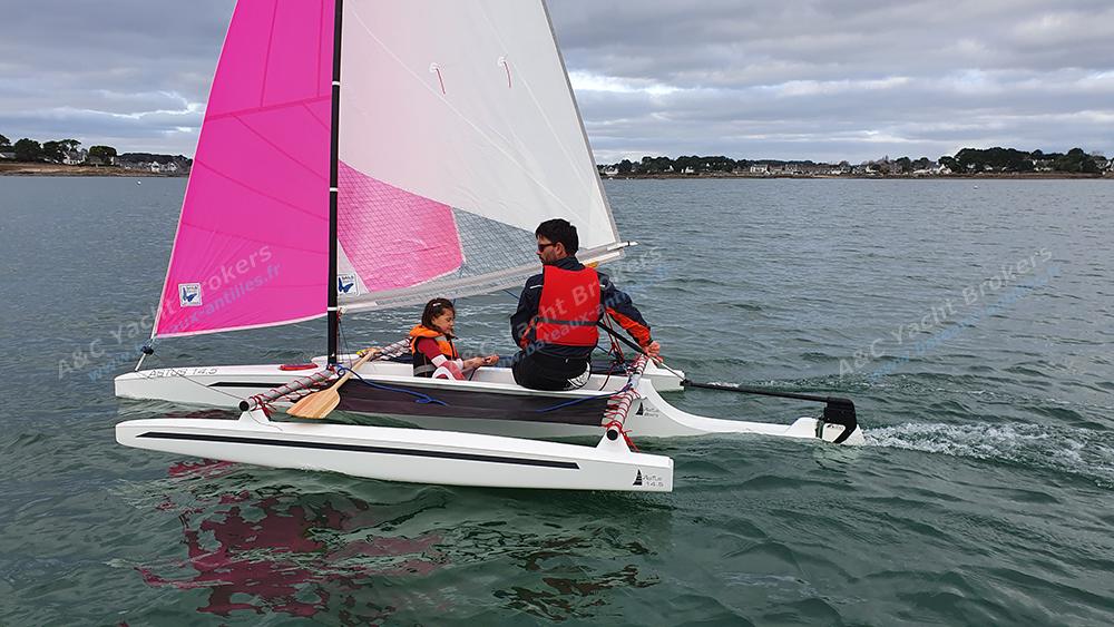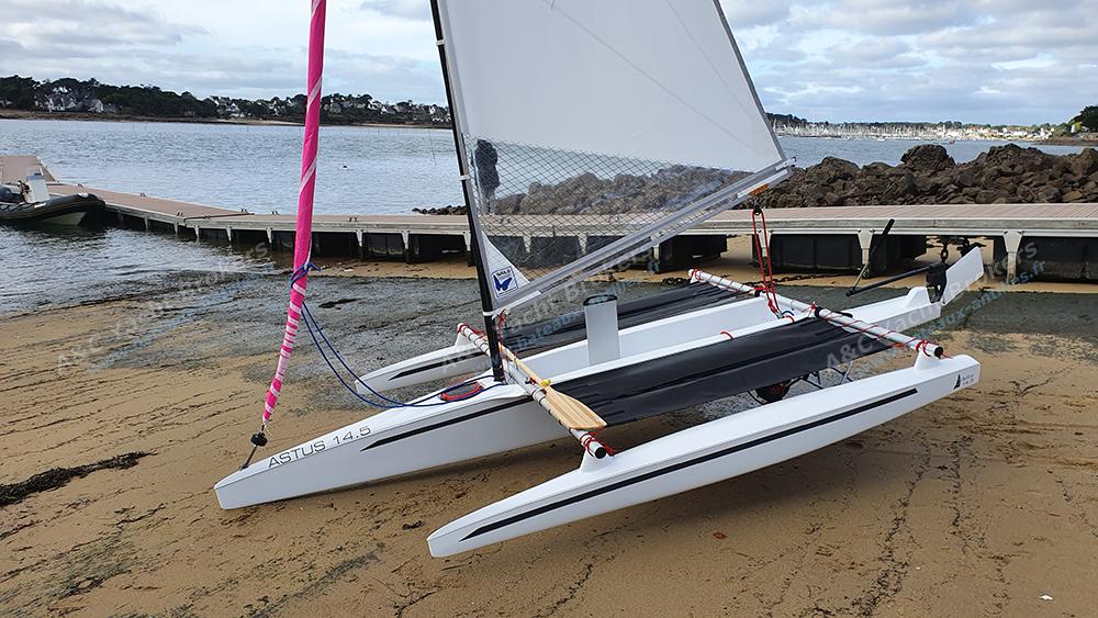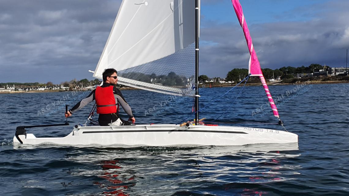 Son mât de 4.70 m est en 2 parties, son safran est pivotant. L'astus 14.5 possède également un petit coffre à l'avant pour stocker le matériel de sécurité.