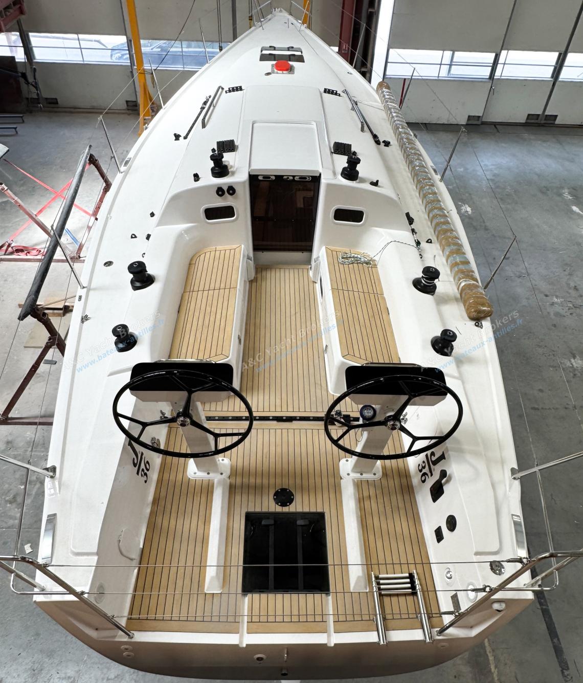 Lancé en 2025, le J/36 reprend la carène éprouvée de son prédécesseur, le J/112E, tout en bénéficiant d’un nouveau plan de pont et d’un cockpit entièrement repensé. Plus spacieux, ce dernier adopte une configuration moderne à deux barres à roue, offrant confort et contrôle optimal en navigation.
