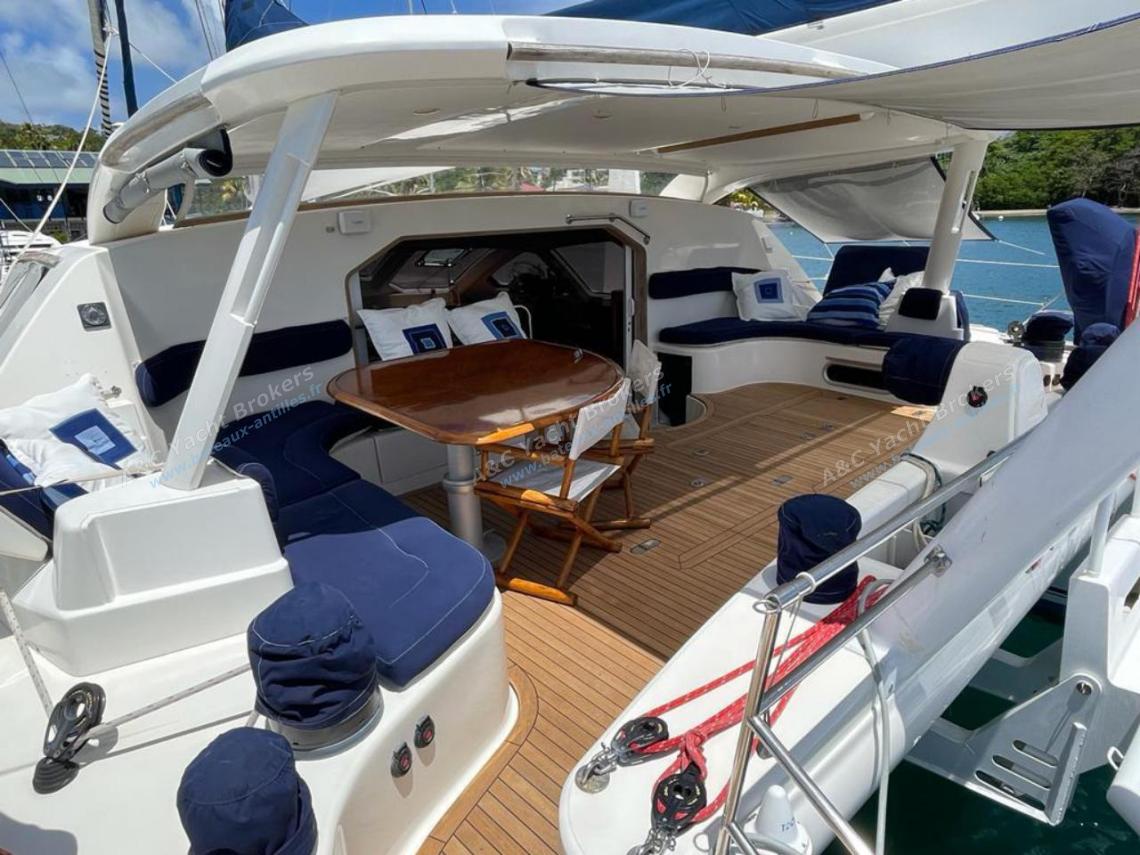 Ce Catana 582 est un catamaran haut de gamme construit par le chantier français Catana en 2005, réputé pour ses multicoques performants et robustes. Ce modèle emblématique allie parfaitement confort, autonomie et vitesse. Grâce à ses coques effilées, ses dérives relevables et sa construction en matériaux composites (sandwich verre/mousse/carbone), le Catana 582 offre d'excellentes performances sous voile, y compris au près.