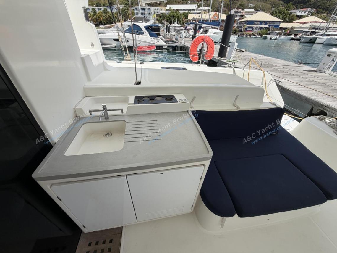 Excellente capacité d’accueil, avec un Fly bridge offrant de vastes espaces de détente, Bateau moderne aux lignes élégantes, pavillon Français, visible en Martinique, hors taxes