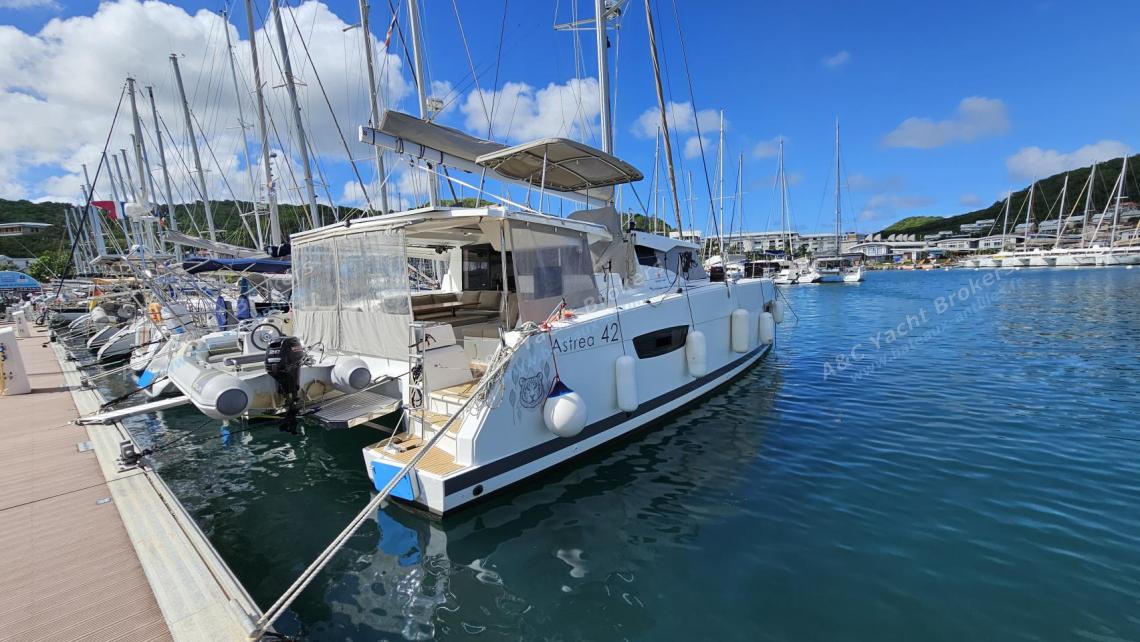 Astrea 42 version propriétaire construit en 2019 par le chantier Fountaine Pajot, bateau privé, jamais loué, très bien équipé, état général proche du neuf,  pavillon français, TVA européenne payée, disponible immédiatement, visible sur le ponton A&C Yachts au port de plaisance du Marin en Martinique