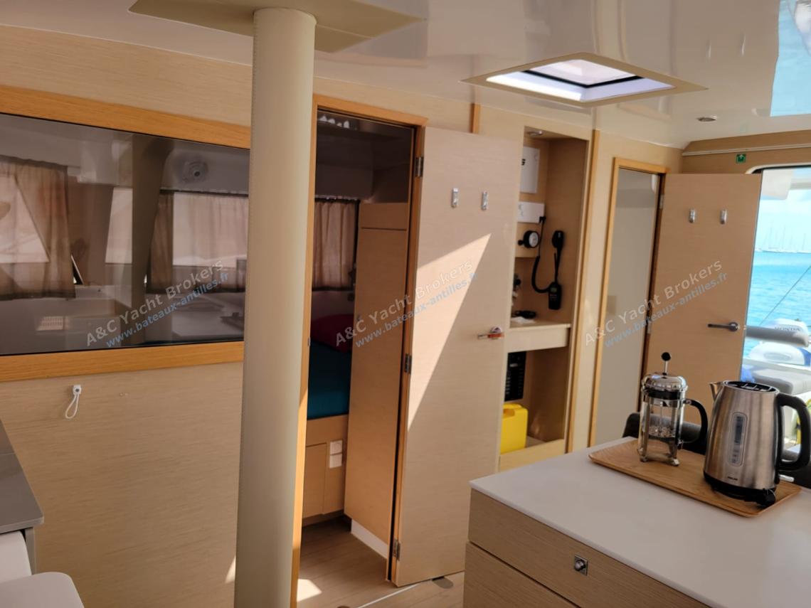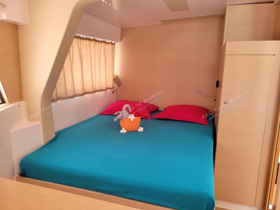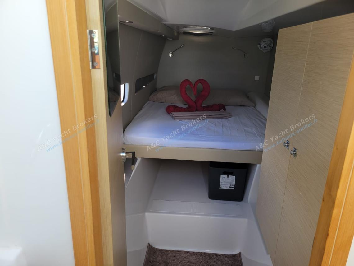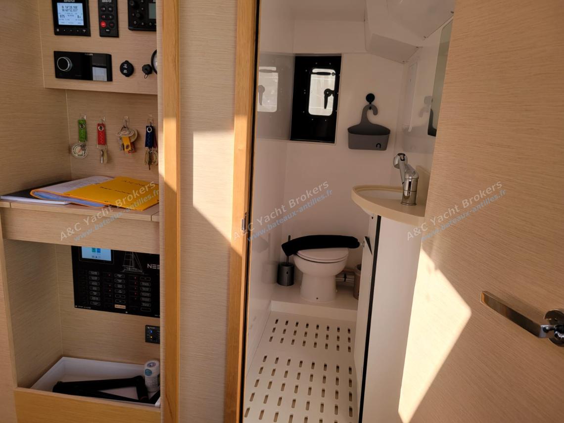 Deux cabines doubles dans les flotteurs ave lavabo, WC électrique à l’eau douce et douche.