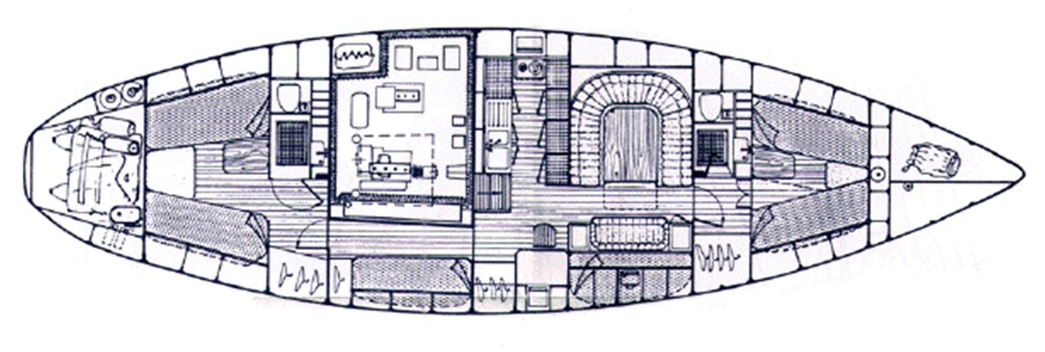 Tissu velours couleur miel dans tout le bateau, boiseries en Okoumé verni satiné, le tout en très bon état