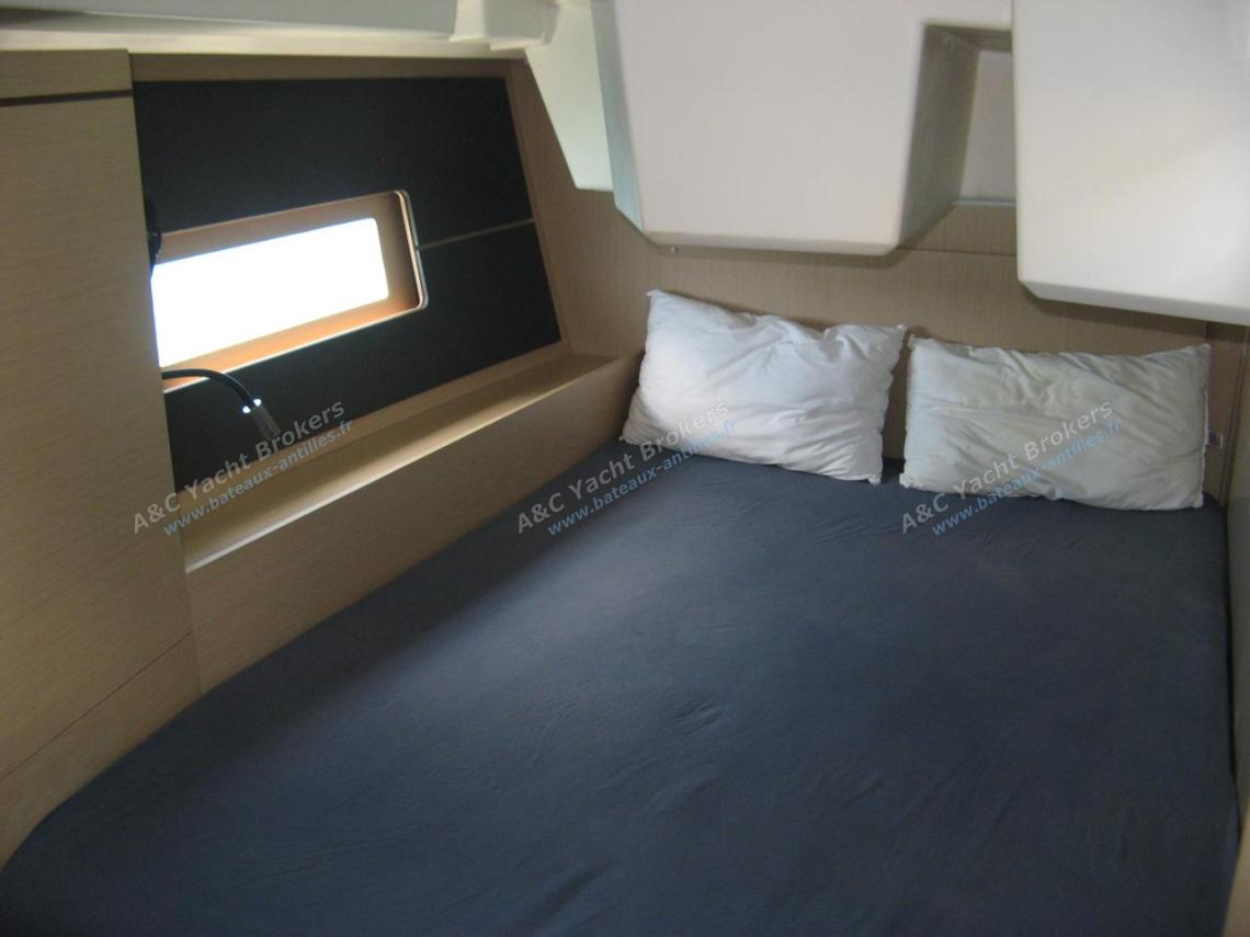 L’intérieur, signé Nauta Design, offre une finition haut de gamme et un éclairage naturel abondant. L’espace de vie est spacieux, notamment le carré et la cuisine en L, idéale pour les longues navigations.